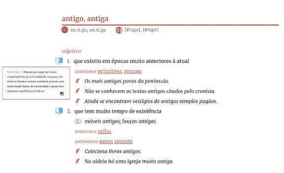 Sentidos de ‘antigo’ anotados com o nível Muito Fácil