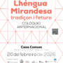 L Anstituto de Lhexicologie i Lhexicografie de l’Academie de las Ciéncias de Lisboua i l Centro de Studos Mirandeses de l’Ounibersidade de l Porto promuoben, ne l próssimo die 20 de febreiro de 2026, un colóquio subre la lhéngua mirandesa, Lhéngua mirandesa: tradiçon i feturo, antegrado nas celebraçones de l Die Anternacional de la Léngua Materna.